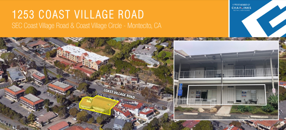 1253 Coast Village Road is an ±11,295 square foot two-level mixed use commercial building located at the southeast corner of Coast Village Road and Coast Village Circle along Highway 101 in Montecito, California.