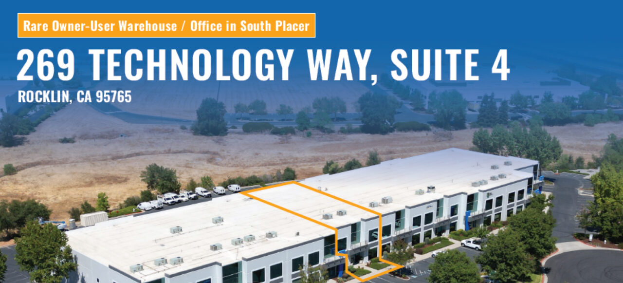 Presenting this rare ±6,720 SF owner-user warehouse / office in the competitive Roseville/Rocklin industrial sub-market. Part of the Pacific Technology Spectrum Business Park, 269 Technology Way unit B-4 is an ideal mix of office and warehouse with 24’ clear height, grade level and dock doors, and a high density sprinkler system. The office portion is two (2) stories and includes: a reception area, conference room, bull pen area, private offices, and two restrooms.