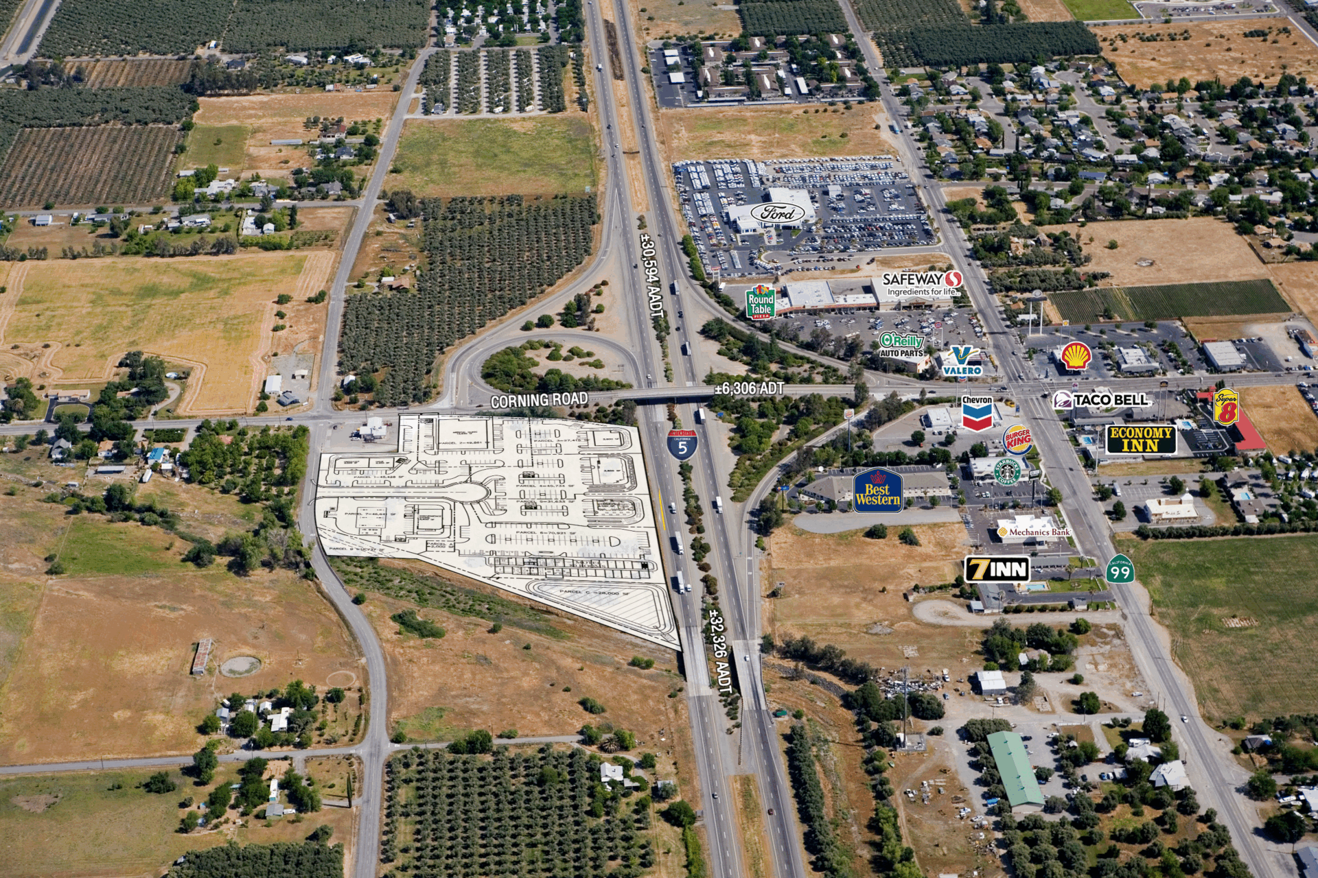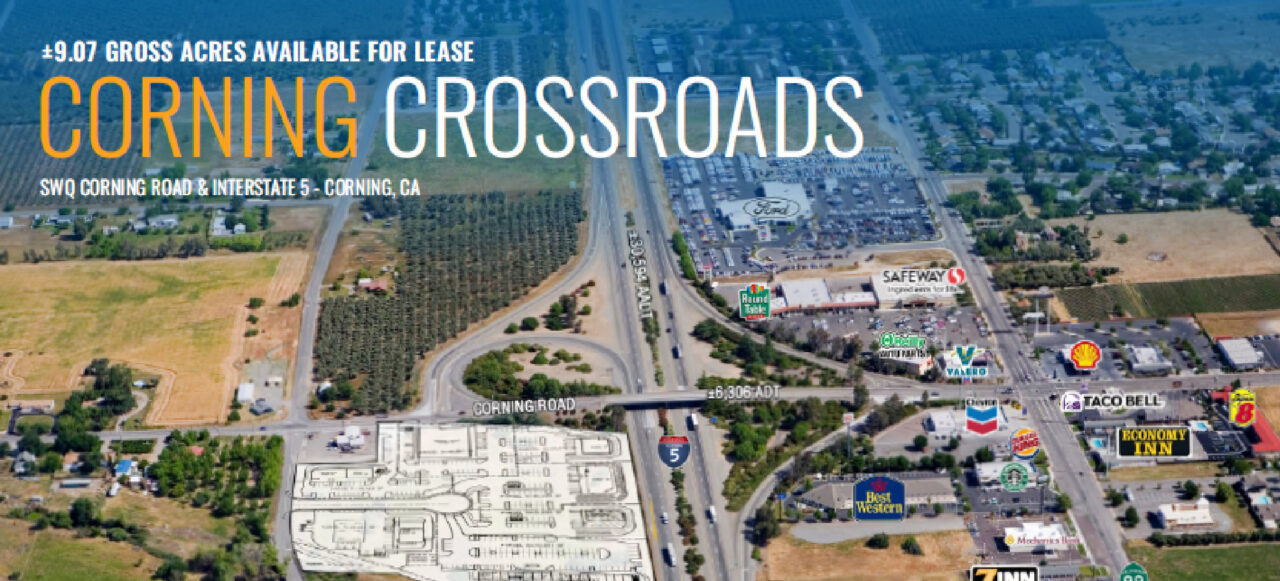Corning Crossroads is a high visibility commercial developent opportunity located at the southwest quadrant of Corning Road and Interstate 5 in Corning, CA.