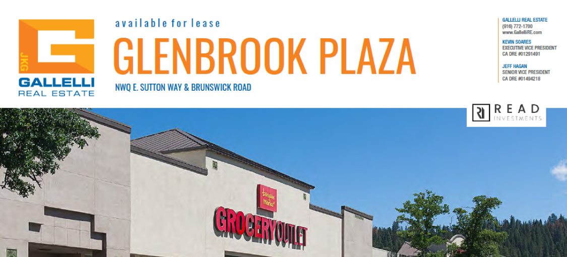 The Glenbrook Plaza Shopping Center is located along Highway 49 at the northwest quadrant of Sutton Way and Brunswick Road in Grass Valley, California.