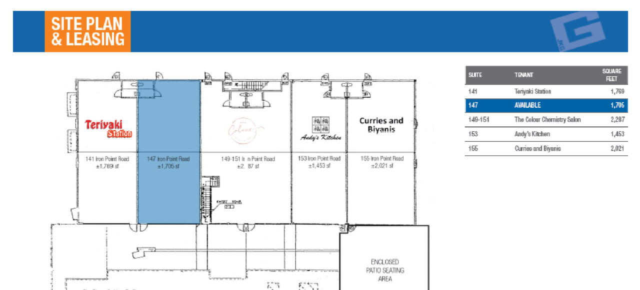 The subject property at 155 Iron Point Road is part of a ±9,235 square foot high profile strip center that is visible to more than 36,000 cars per day traveling the intersection.