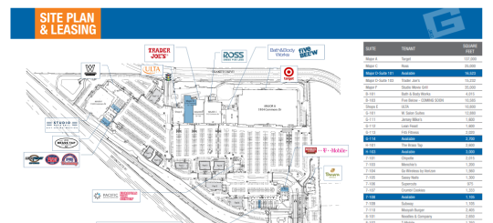 Notable high traffic quick service and full service restaurant co-tenants include Panera Bread, Chipotle, Mooyah Burger, The Brass Tap, Noodles & Co., Jersey Mike’s and Lean Feast.
